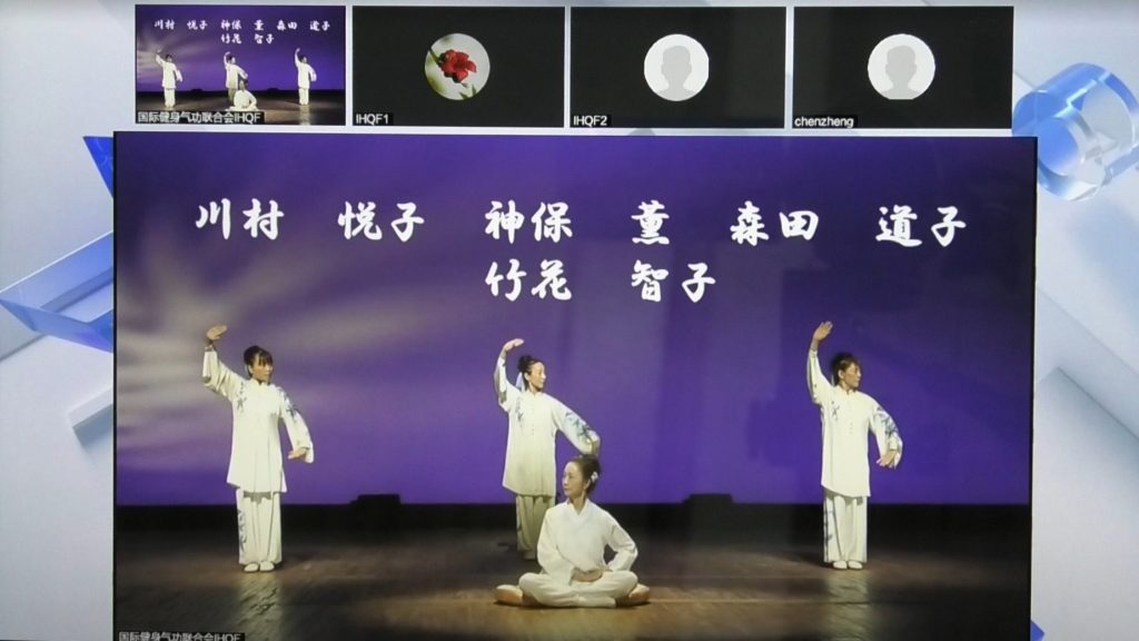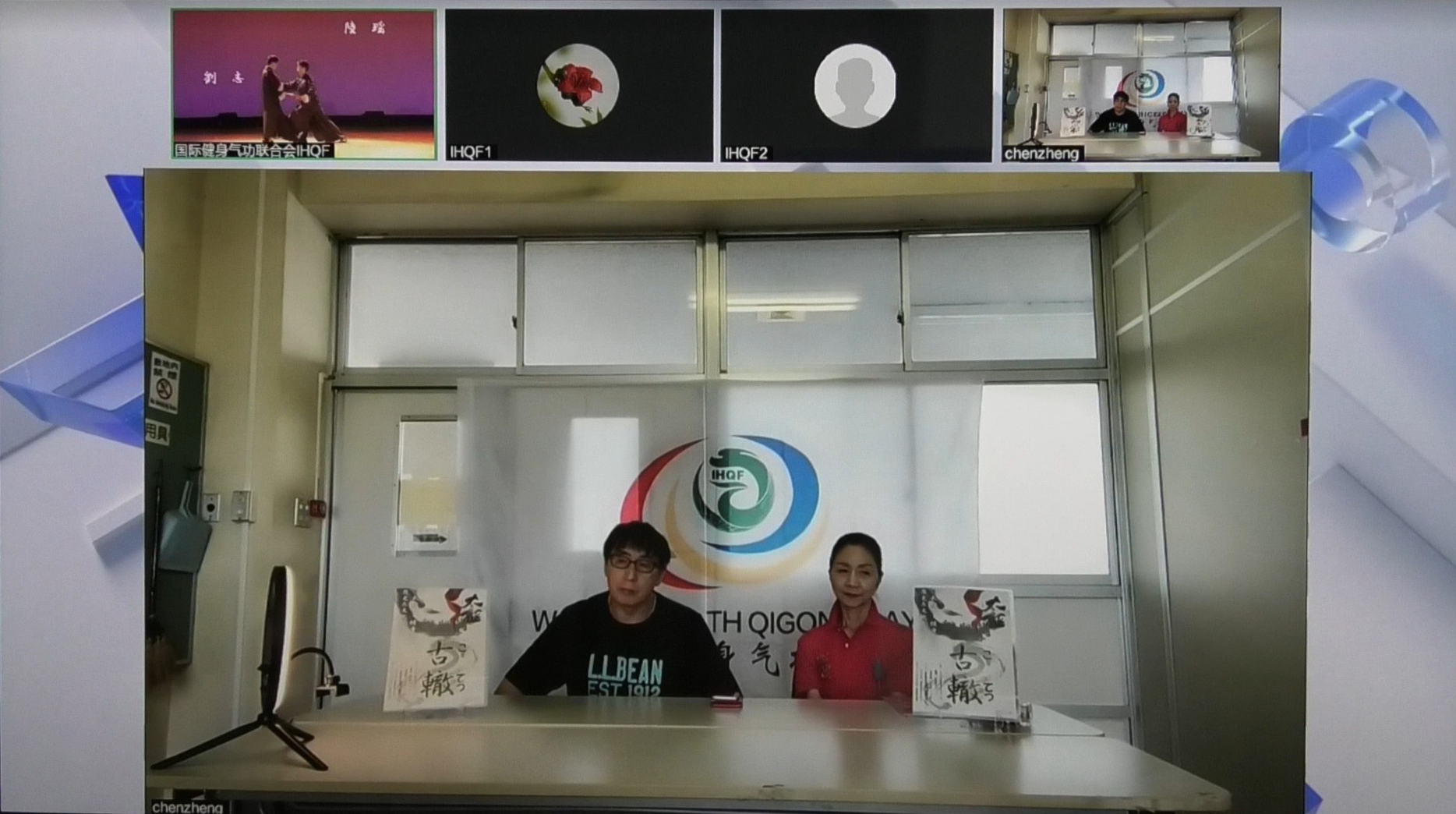 今年の9月13日世界健身気功日は、中国国際健身気功連合会(国気連)からの依頼で、8月に行った舞台「古轍」についての対談で参加しました。国気連の呉先生からインタビューを受ける形式で、脚本した全日本健身気功練功会会長陳崢先生と竹花が出演、その内容がインターネットにてリアルタイムに世界中の健身気功愛好家に配信されました。